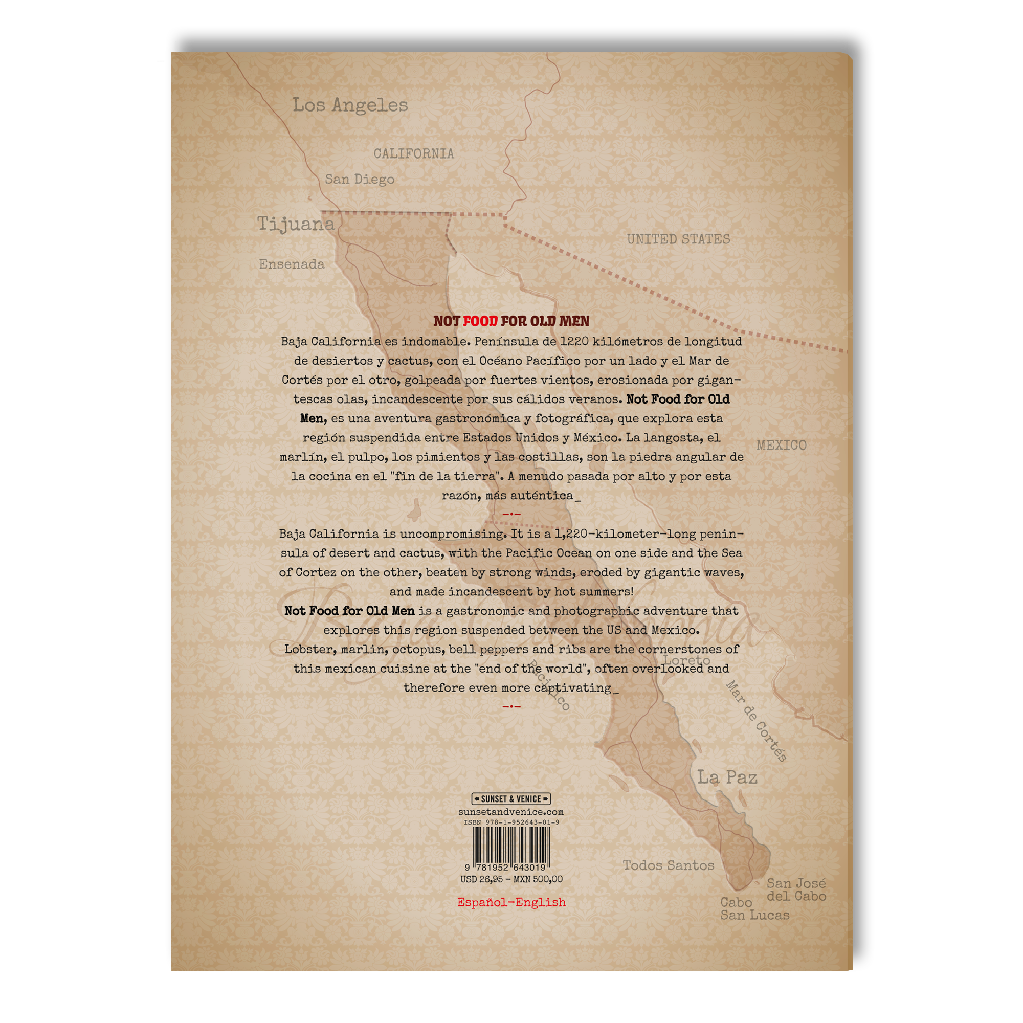 Baja California is uncompromising. It is a 1,220-kilometer-long peninsula of desert and cactus, with the Pacific Ocean on one side and the Sea of Cortez on the other, beaten by strong winds, eroded by gigantic waves, and made incandescent by hot summers! Not Food for Old Men is a gastronomic and photographic adventure to explore this region suspended between the US and Mexico. The lobster, marlin, octopus, chiles, and ribs are the cornerstones of a kitchen at the “end of the world,” often overlooked and for this reason even more authentic.